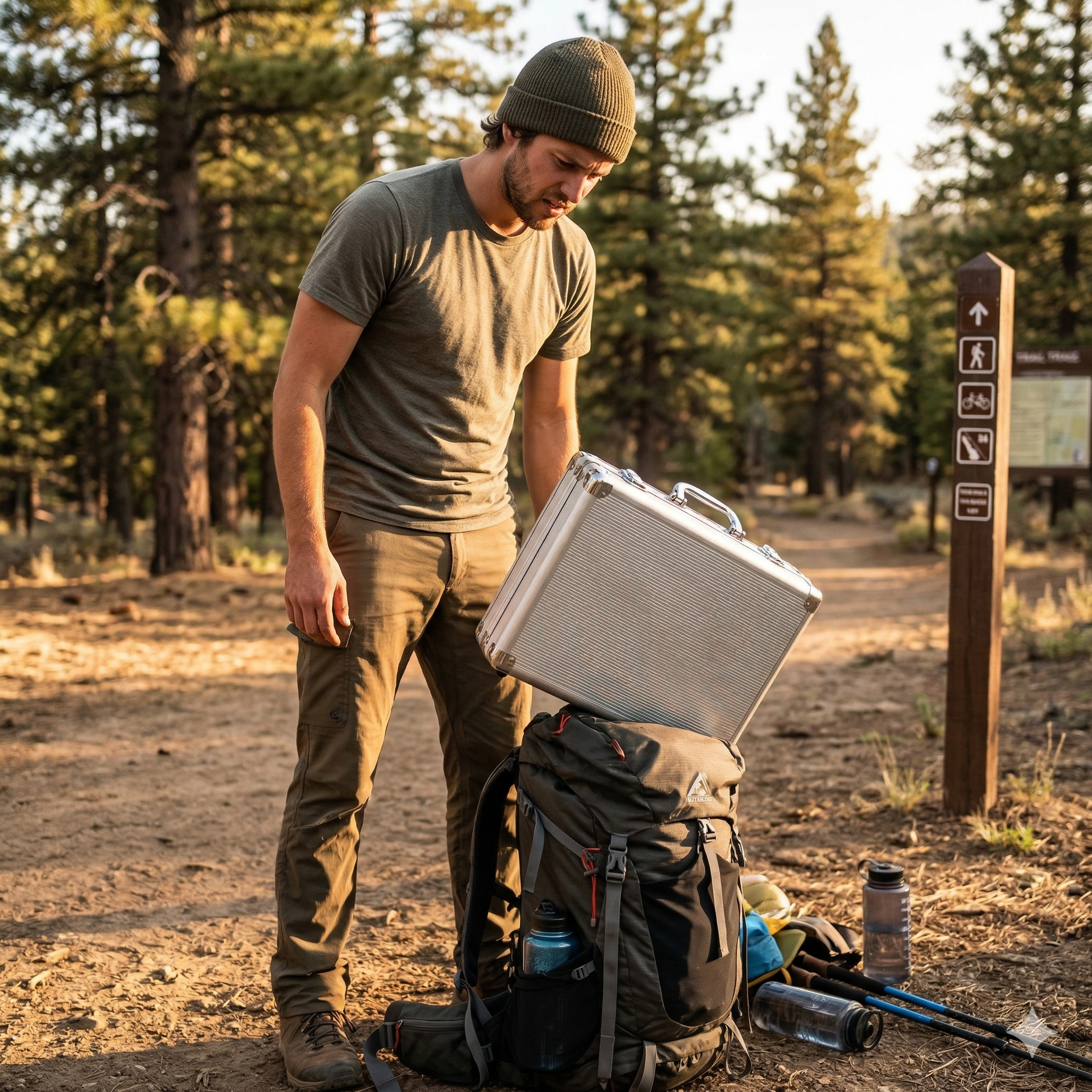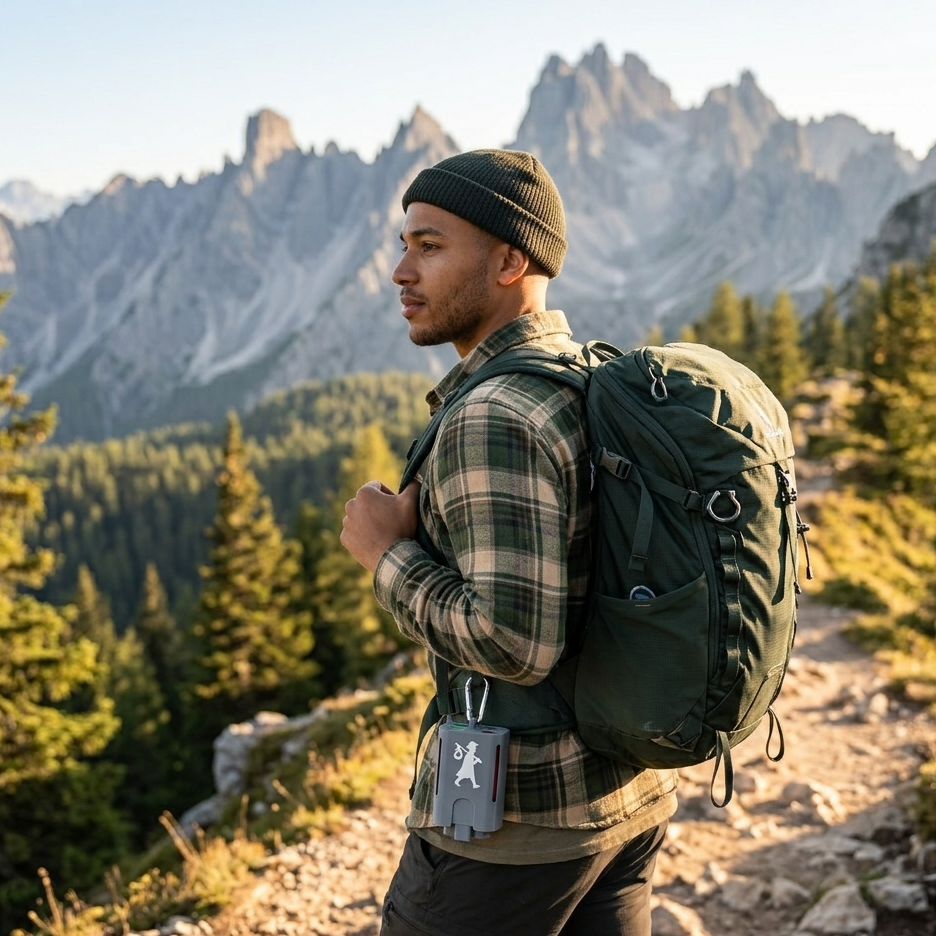 שאקל מובנה נתלה על כל תיק גב, לולאת חגורה או רצועה. בלי נרתיק נפרד, בלי מקום מבוזבז. פשוט תלה וצא לדרך.